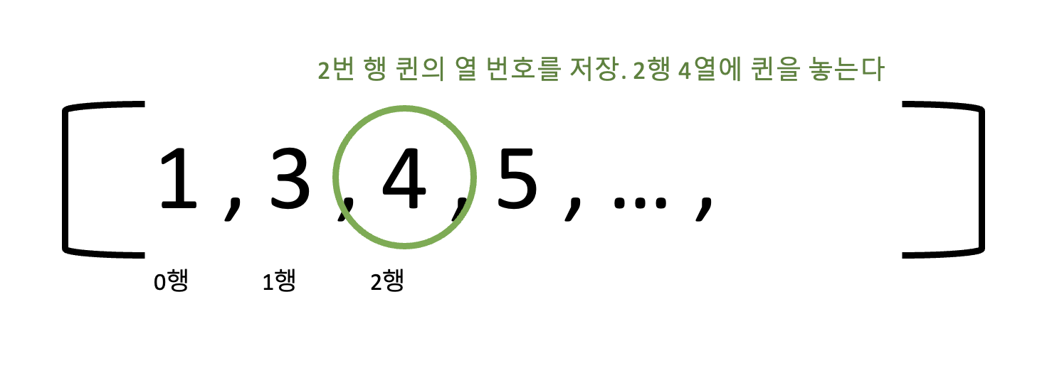 board[n]에 n번 행에 놓인 퀸의 열 번호를 저장하면 된다.